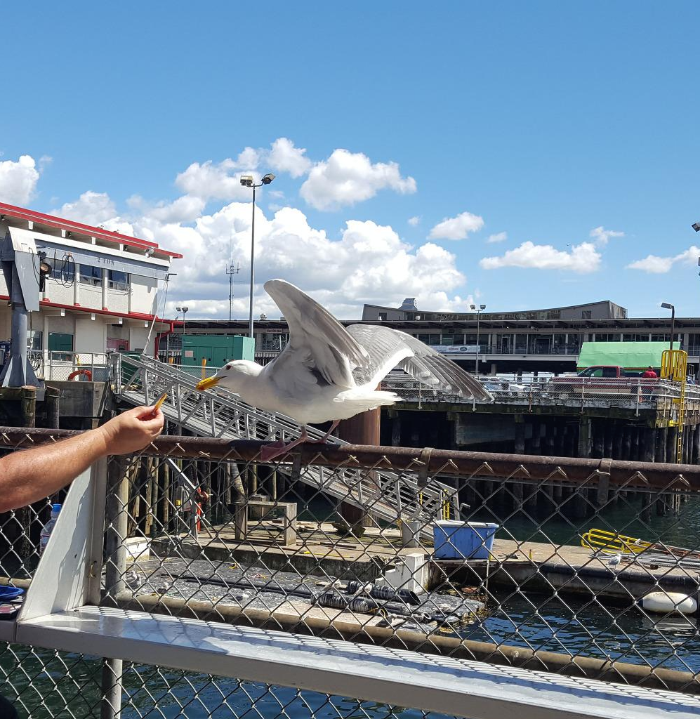 바닷가라 그런지 갈매기들도 꽤나 많았다. 우리의 음식을 노리는 듯 했다. 우리 좌석 근처에서 어떤 아저씨가 갈매기에게 감자튀김을 주는 것을 봤는데, 나는 갈매기의 식생활은 잘 모르지만 왠지 육지음식인 감자, 그것도 튀긴 감자를 먹지 않을 것 같다는 생각을 했었는데 의외였다.