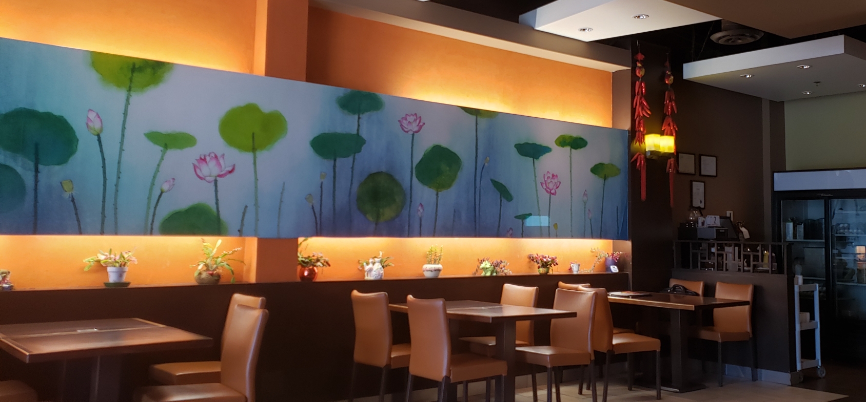 내벽에는 이렇게 큰 연꽃 그림이 자리하고 있어요. 저는 점심시간이 한참 지난 3시 정도에 가서 아무도 없었는데요. 버블티를 테이크아웃 하는 사람들이 종종 있었답니다.