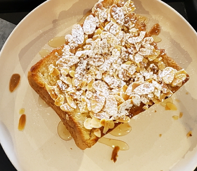 허니브레드가 정말 몇 년만인지 모르겠네요! 아몬드와 꿀이 듬뿍듬뿍 올라가있어서 맛있게 먹었습니다😄 아이스크림도 올릴 수 있다고 하는데 전 안올렸어요.