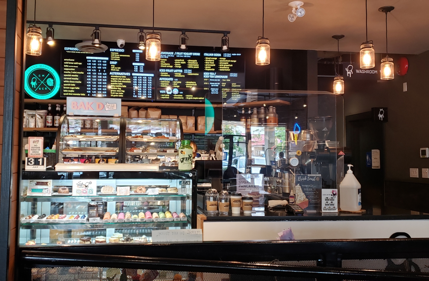 주문하는 곳은 이렇게 되어있어요. 크로아상, 마카롱, 허니브레드, 크레이프 케이크, 티라미수 등 먹거리도 다양하게 있어서 한국에 있는 카페 느낌이에요!!