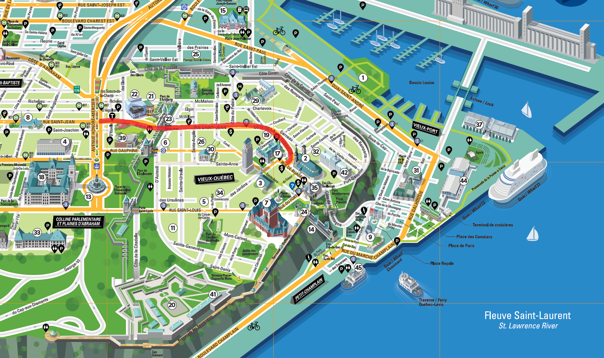 올드 퀘벡 여행, 두 번째 날에는 퀘벡 성벽과 Rue Saint-Louise를 걸었다. 위에 사용한 지도는 퀘벡 시티 홈페이지에서 다운받았다. 아래 링크를 클릭하면 바로 pdf파일을 받을 수 있다. https://www.quebec-