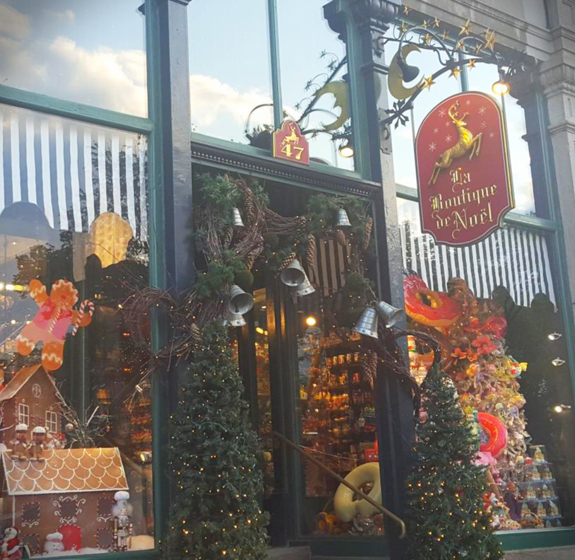 중간에 가장 높게 솟아있는 것이 페어몬트 샤토 프론테낙 호텔. 하늘이 구름 한 점 없이 맑았다! 상점가가 정말 많지만, 그 중에도 1년 365일 내내 크리스마스 장식 용품을 파는 가게, 라 부티크 드 노엘La Boutique de Noel이 눈에 들어왔다.