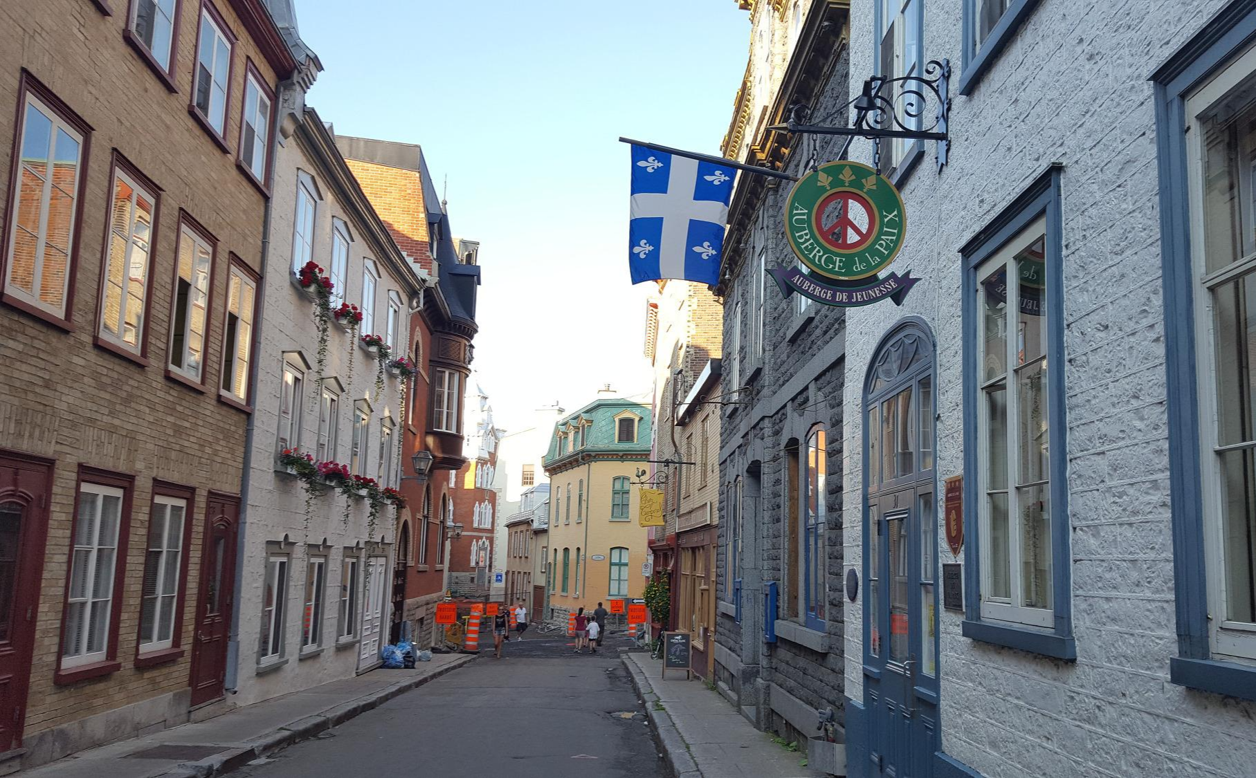 내가 머물렀던, 올드 퀘벡 안에 있는 호스텔 Auberge de la Paix 앞. 파란색 깃발이 퀘벡주의 주기다. 퀘벡주는 캐나다에서 가장 프랑스 문화권에 있는 주인데, 공식적으로 영어와 프랑스어 2개 국어를 채택하고 있는 캐나다에서 프랑스어를 메인으로 사용하는 유일한 주이기도 하다. 참고로 뉴 브런스윅New Brunswick은 캐나다에서 유일한 이중언어 사용 주다.