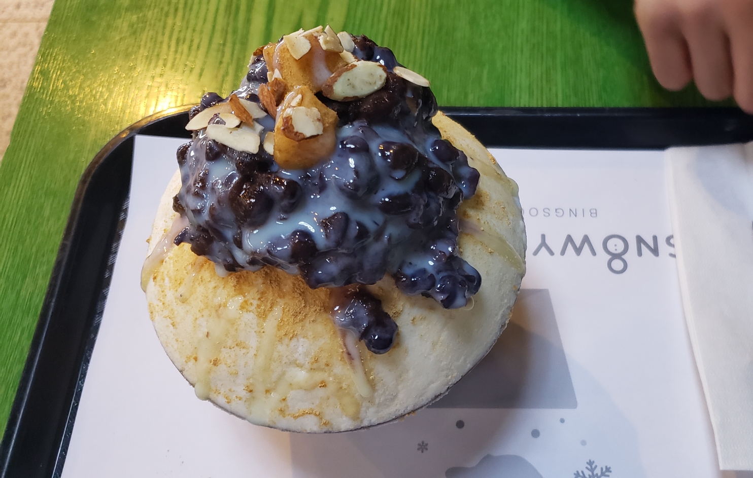 빙수 종류가 정말 많은데 저는 눈꽃빙수(Milk bingsu)를 주문했습니다! 레귤러 사이즈와 라지 사이즈가 있는데 전 라지를 주문했어요.