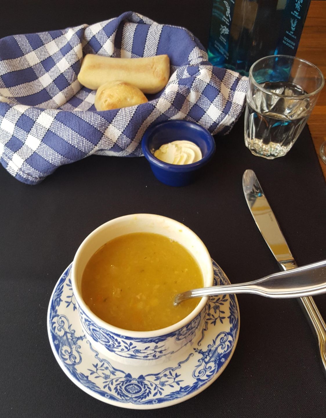 식전빵은 작은 빵 두 조각을 버터와 함께 내왔는데 그냥 버터를 발라 먹어도 맛있고 soup에 찍어 먹어도 맛있었다. 무엇보다 앞으로 먹어야 할 것들이 많은데 크기가 너무 크지 않아서 좋았다.