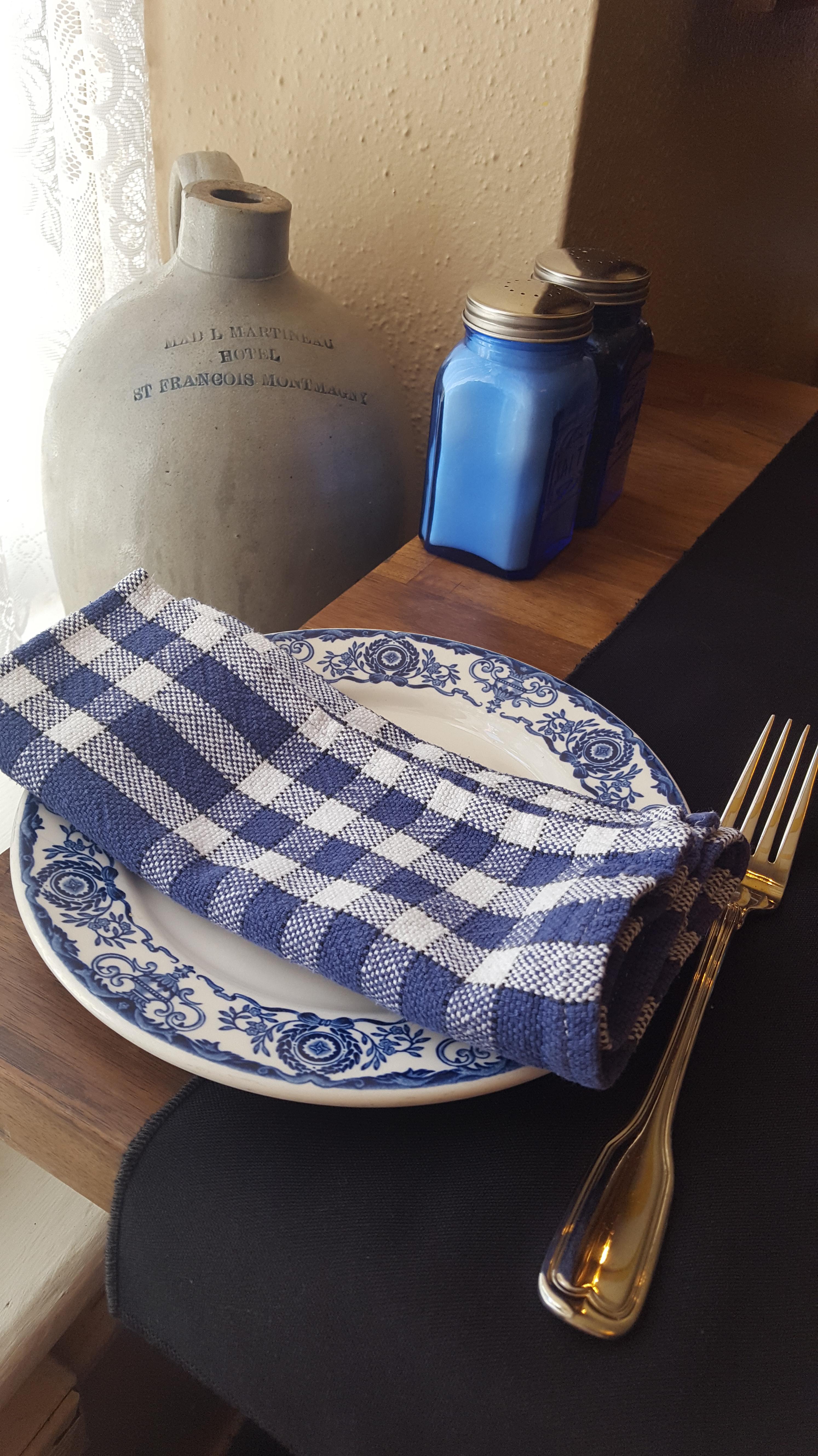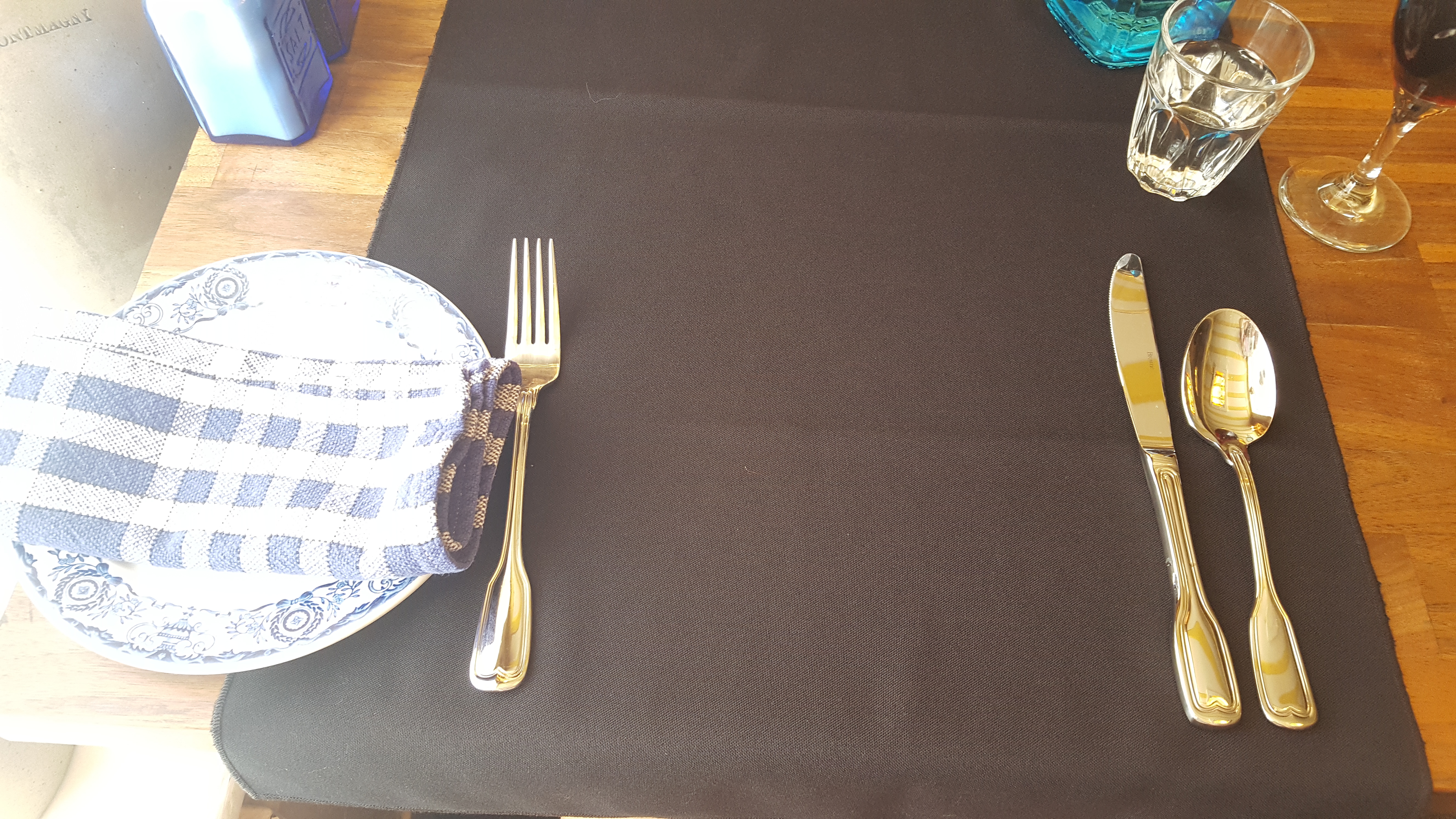 물병도, 그릇도, 냅킨도, 소금과 후추통도 전체적으로 파란톤으로 꾸며져 있었다.
