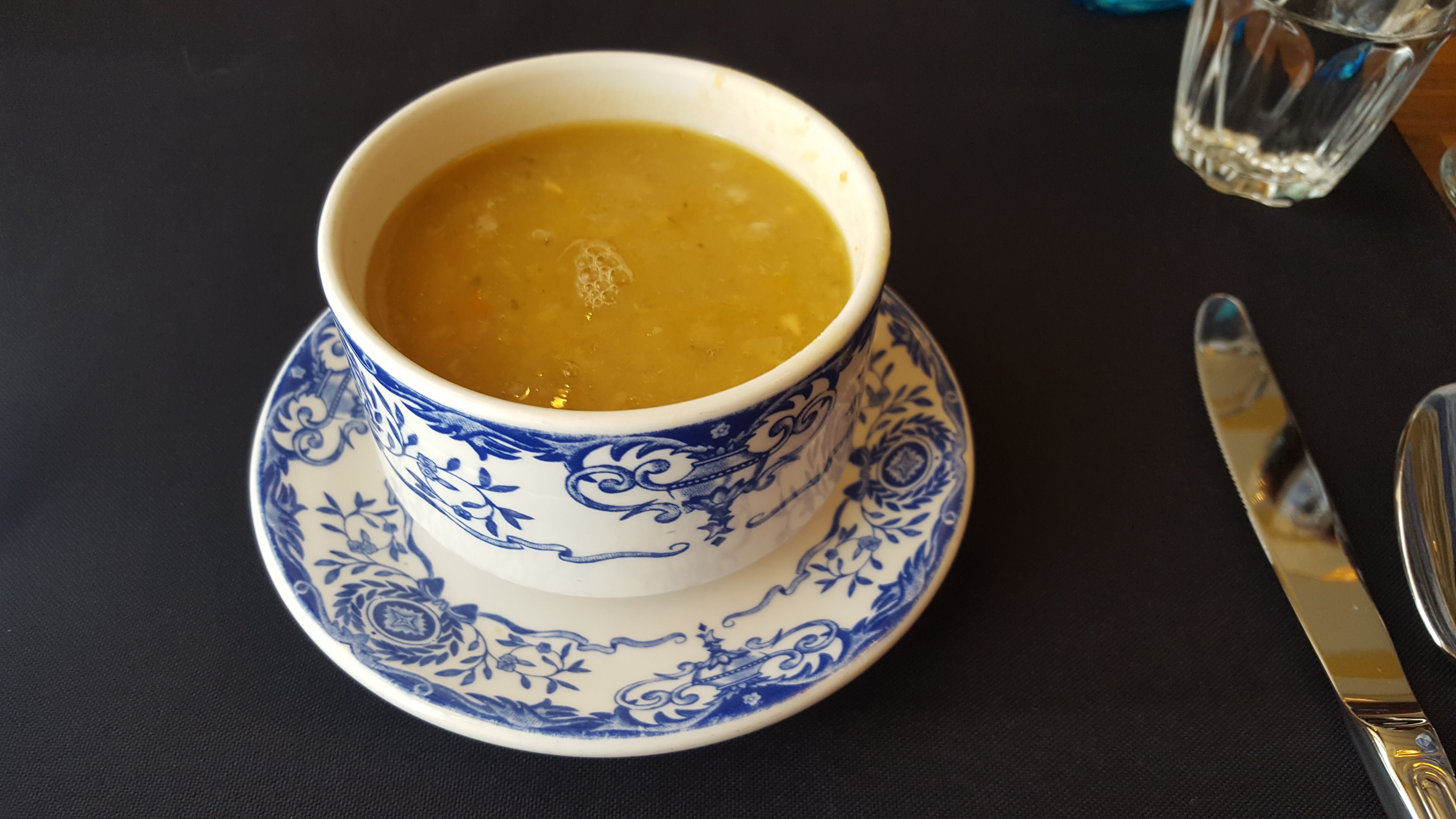 가장 먼저 애피타이저인 soup과 식전빵이 나왔다. soup는 Pea soup Grand-mère이었는데 크림 베이스가 아니라서 가볍고 양도 적당했다. 가정식 느낌의 건강한 맛!