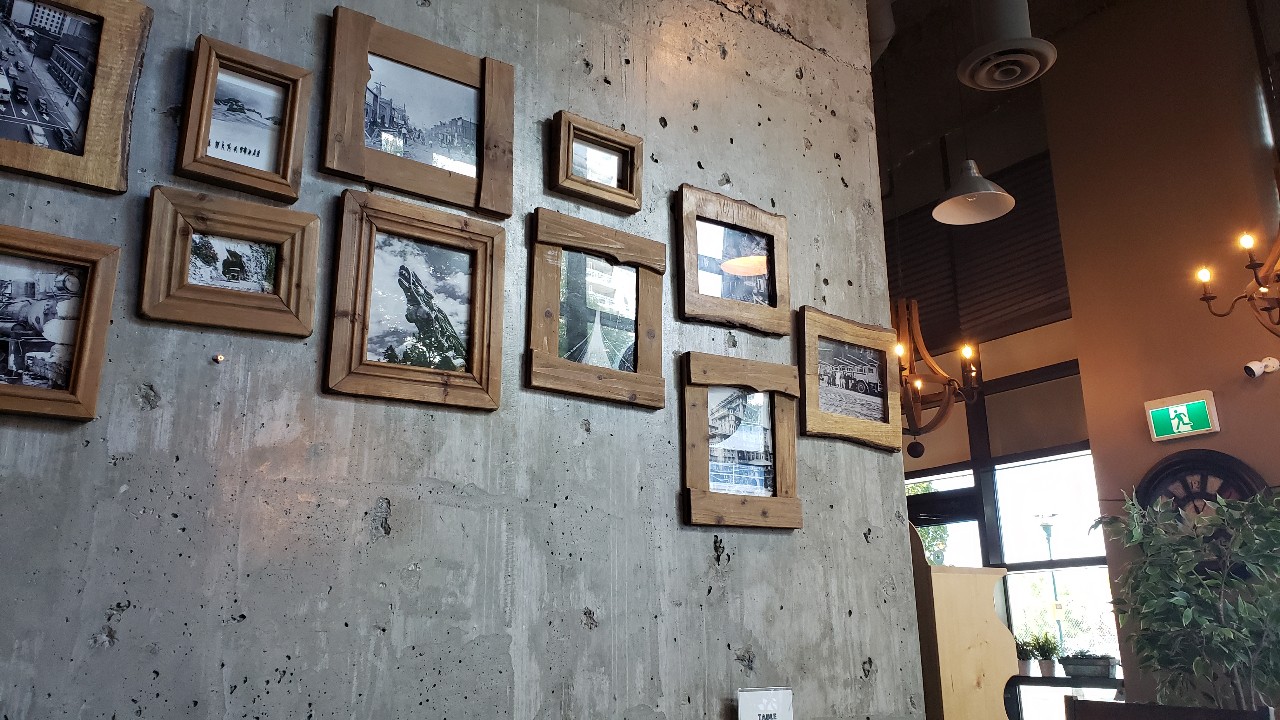 다른 쪽 벽면은 액자와 조명으로 장식이 되어있습니다.