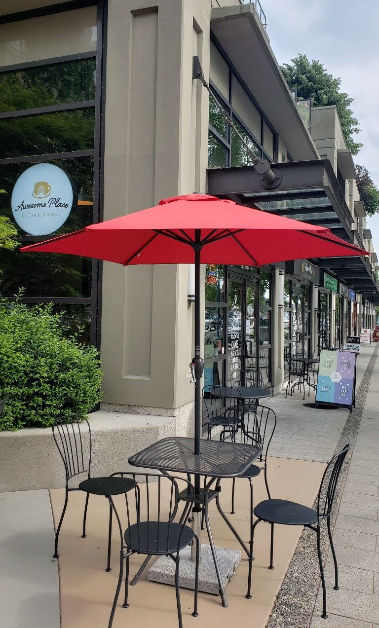 바깥 좌석은 빨간 파라솔이 같이 있어요! 쨍쩅한 날에도 부담 없겠네요ㅎㅎ