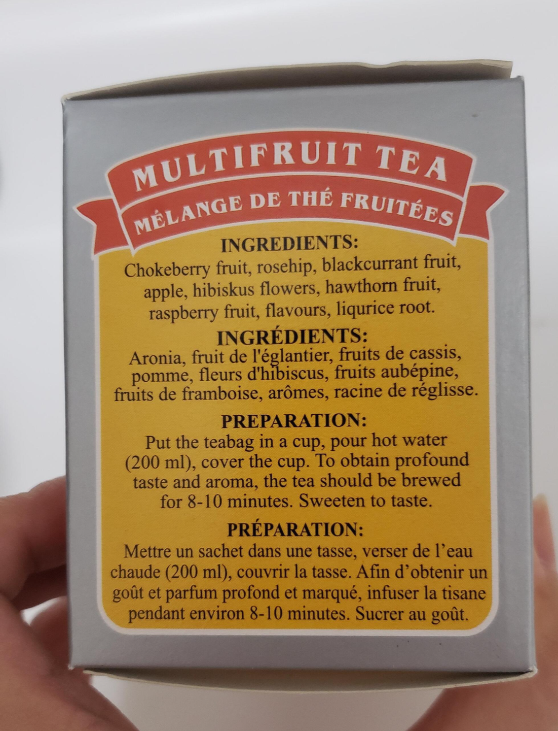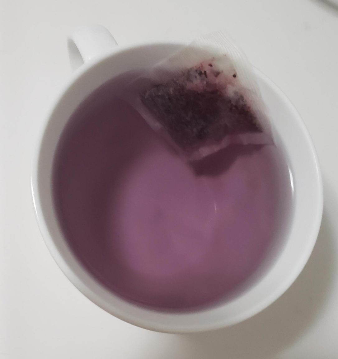 히비스커스, 로즈힙 뿐만 아니라 chokeberry, blackcurrant, 사과 등 여러 과일이 들어 있어서 상큼하다! 캐나다에서 산거라 그런지 영어와 불어가 같이 써있다. 언제 기회가 된다면 프랑스어도 배워보고싶다. 라고 생각은 하지만 중국어를 먼저 배우고 싶긴 하다. 언젠가는 다 배울 수 있겠지.티백을 우리면 처음에는 연한 보라색이다가,