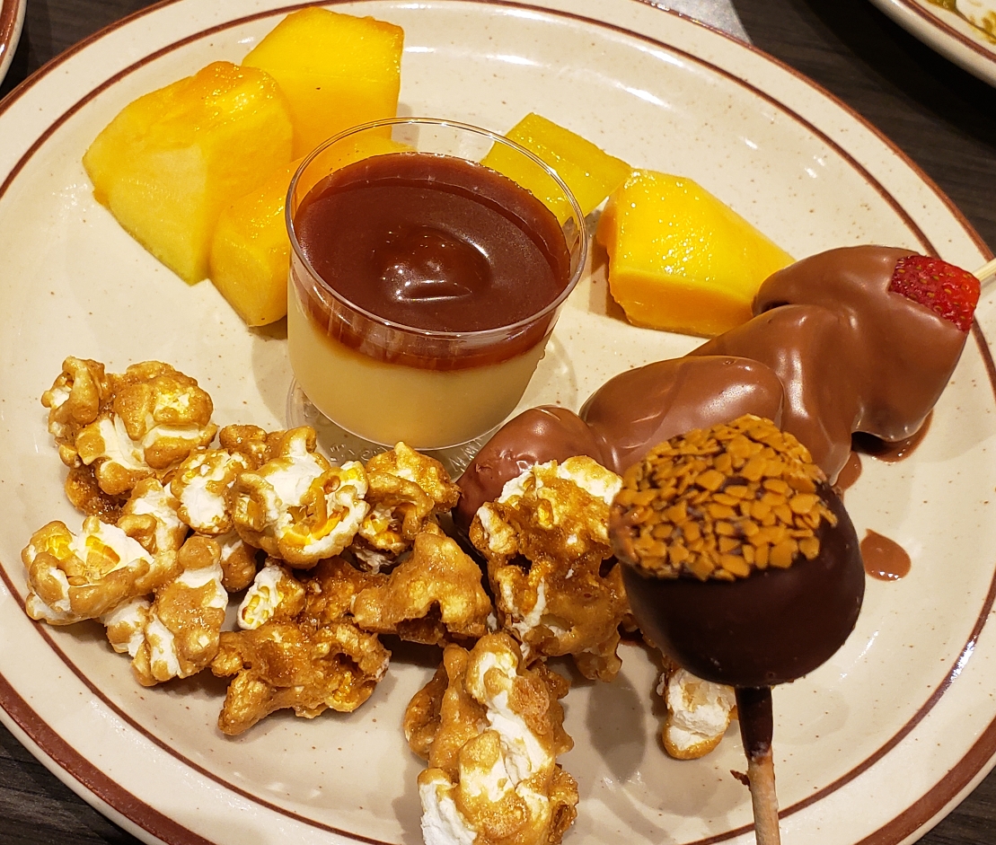 후식으로는 각종 케이크류와 초코 퐁듀를 먹을 수 있는데요, 위에 보신 것 처럼 큰 초콜릿 분수가 있어서 먹는 재미도 있지요. 역시 직원에게 먹고싶은 것을 부탁하면 담아줍니다. 케이크류도 있는데 너무 달아서 전 안먹었어요.