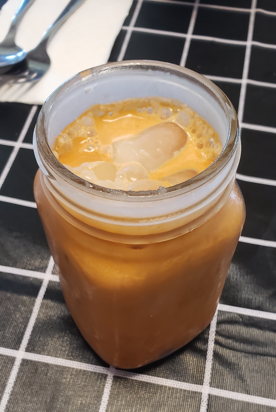 타이 아이스티가 먼저 나왔어요. 타이 아이스티는 중국이나 대만식 밀크티와는 다르게 타마린드와 카다몸 등의 추가 재료를 넣은 밀크티입니다. 달달하면서도 묘한 맛이 있어요.역시 맛집인지 타이 아이스티가 진하고 맛있더라고요! 일반 밀크티 전문점에서는 타이 아이스티를 주문하면 아주 약간 향신료가 첨가된 맛의 밀크티를 주곤 하던데 여기 아이스티는 진~한 맛이 있었습니다!!
