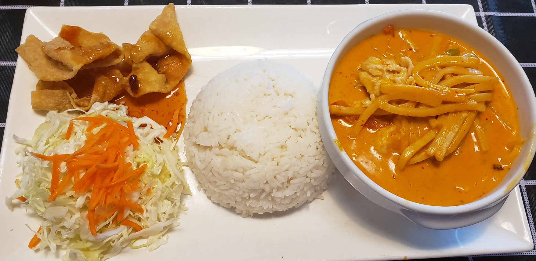 닭고기 레드커리 솔직히 저는 미니 샐러드나 크리스피랩은 별로 기대를 안했거든요. 그런데 크리스피랩이 진짜 너무 맛있더라고요...! 런치 메뉴에는 세 개씩 같이 나와요. 디너에는 따로 주문할 수 있는 메뉴고요.