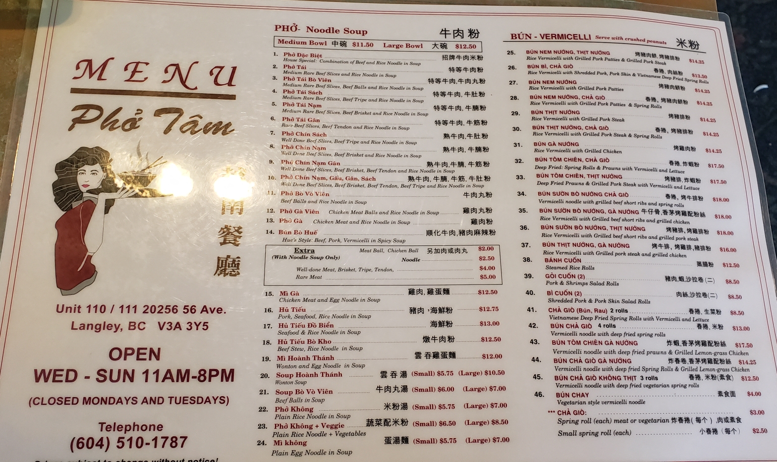 포 탐Pho tam은 써리와 랭리에 지점이 있는 베트남 음식 맛집인데요, 써리 지점이 본점인 것으로 알고있어요. 저는 랭리 지점으로 다녀왔습니다. 써리와 랭리 모두 같은 베트남계 사장님이 운영하고 있다고 하니 맛은 비슷할 것 같습니다.