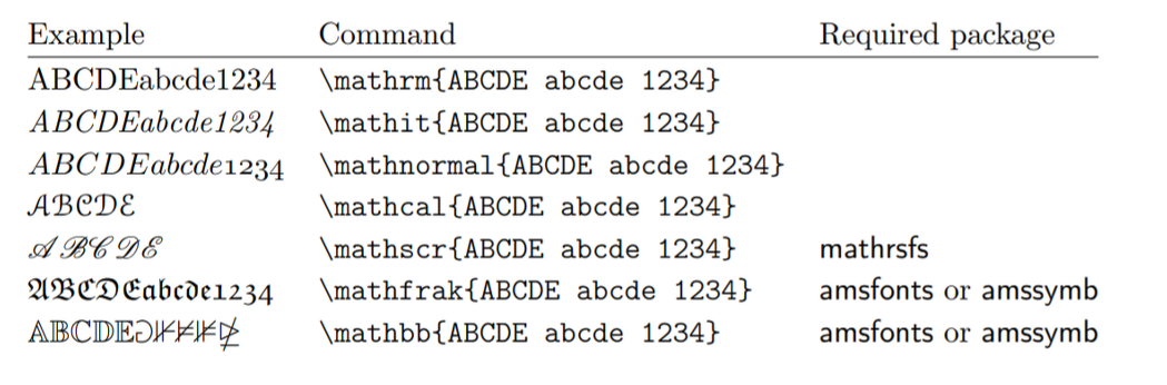 수식 내에서 사용할 수 있는 폰트로 변수나 특정 집합 등을 표시할 때 유용함. 정수 집합 Z나 유리수 집합 Q는 mathbb 사용하면 됨.