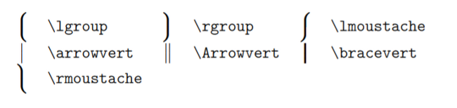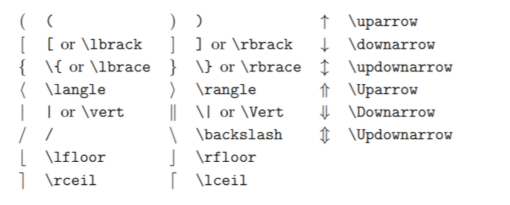 전부 사용 가능. 괄호 속에 분수가 있거나 적분 기호 등의 큰 기호가 있으면 그에 따라 크기가 늘어남. 역시 집합 괄호는 백슬래쉬도 함께 써줘야 함.