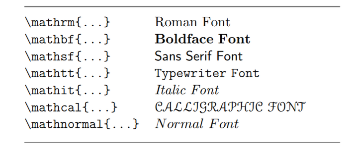 (1)의 Table 3.11 7. 수학 폰트 종류