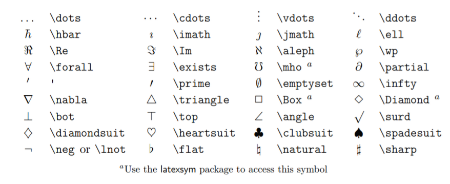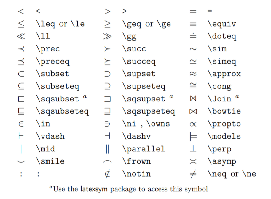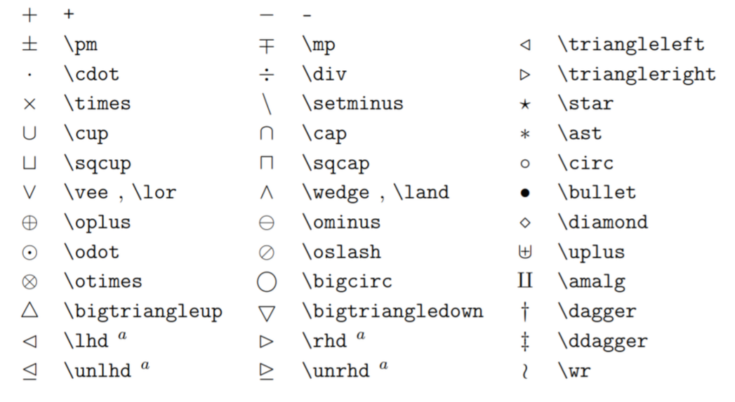 (1)의 Table 3.4, 옆에 a가 붙어있는 기호를 쓰려면 latexsym 패키지를 사용하세요. *기타 연산 기호