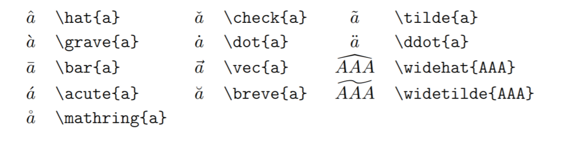 (2)에서 가져옴 3. 문자 위에 씌우는 강조 표시 (문자 위에 ^, ~, 등)